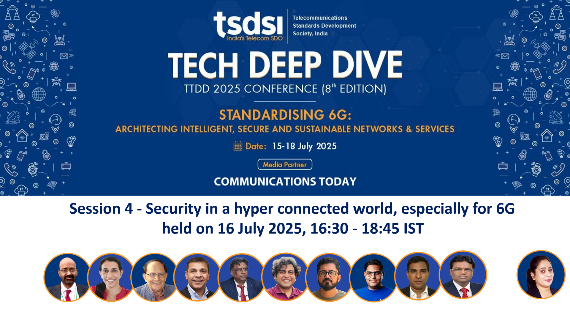 Dr. T R Reshmi (Scientist, SETS), together with Mr. G. Narendra Nath (NSCS), co-chaired TSDSI Tech Deep Dive 2025 – Session 4: “Security in a Hyper Connected World, especially for 6G.” Experts discussed quantum safe cryptography, blockchain for decentralized identity and spectrum allocation, AI driven real time threat detection, and edge privacy in future 6G networks.