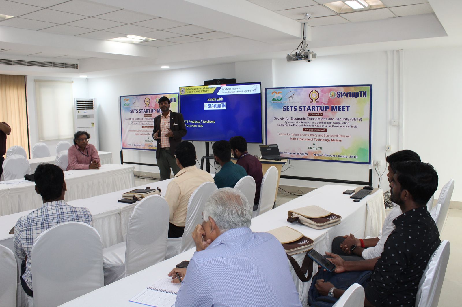 SETS, in collaboration with StartupTN and ICSR, IIT Madras, successfully hosted the SETS Startup Meeting, a platform that brought together innovative technology startups from Tamil Nadu’s digital and cybersecurity ecosystem.